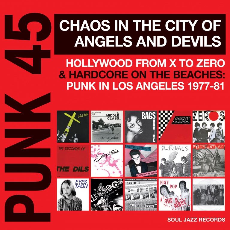 Pour ceux qui ne connaissent pas les excellentes compilations de punk de Soul Jazz Records, intitulées Punk 45, vous pourrez jeter votre dévolu dès le 11 mars 2016 sur ce sixième volume consacré au punk de Los Angeles. entre 1977 et 1981… beaucoup de groupes méconnus, d’autres ayant marqué l’histoire du punk comme The Urinals, et aussi un titre violent d’Iggy Pop & The Stooges. Douple LP avec de nombreuses notes.