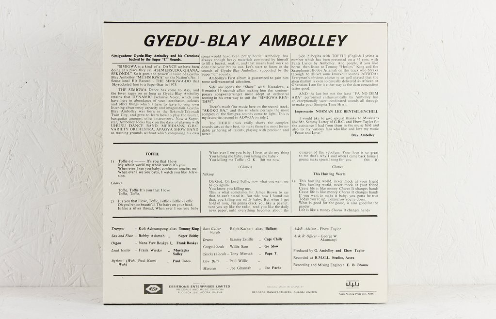 Ambolley a grandi à l’apogée du highlife ghanéen, ce genre musical inspiré des musiques sacrées, des fanfares militaires et du calypso, qui prend racine dans les années 20. L’album est écrit et produit avec Ebo Taylor – aussi monstre sacré du Highlife- et tire ses inspirations de James Brown. Le Style de Ambolley évoluera par la suite avec des variantes hip-hop, on le considère souvent comme le père de l’afro-rap… a travers ce qu’on appela le hiplife.